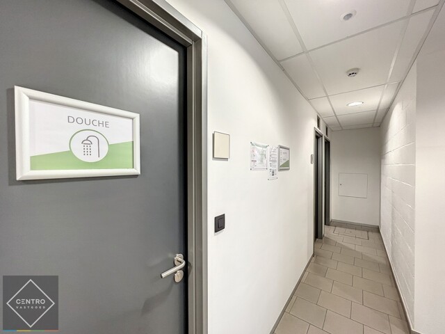 Kantoor: keramische vloeren - vast tapijt - tegelplafonds met airco en ventilatie - centrale verwarming - rookmelders - datavoorzieningen.