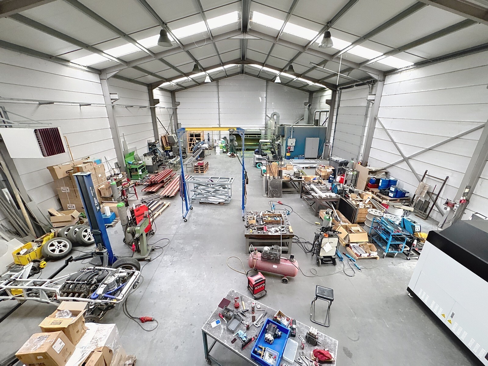 - Dak: Recent vernieuwd en geïsoleerd dak met sandwichpanelen en lichtstraten