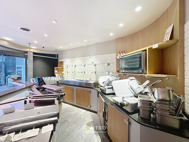 Handelsgelijkvloers (Momenteel slagerij met winkelruimte) - atelier - kookruimte - wasplaats - grote kelder - koer/terras.