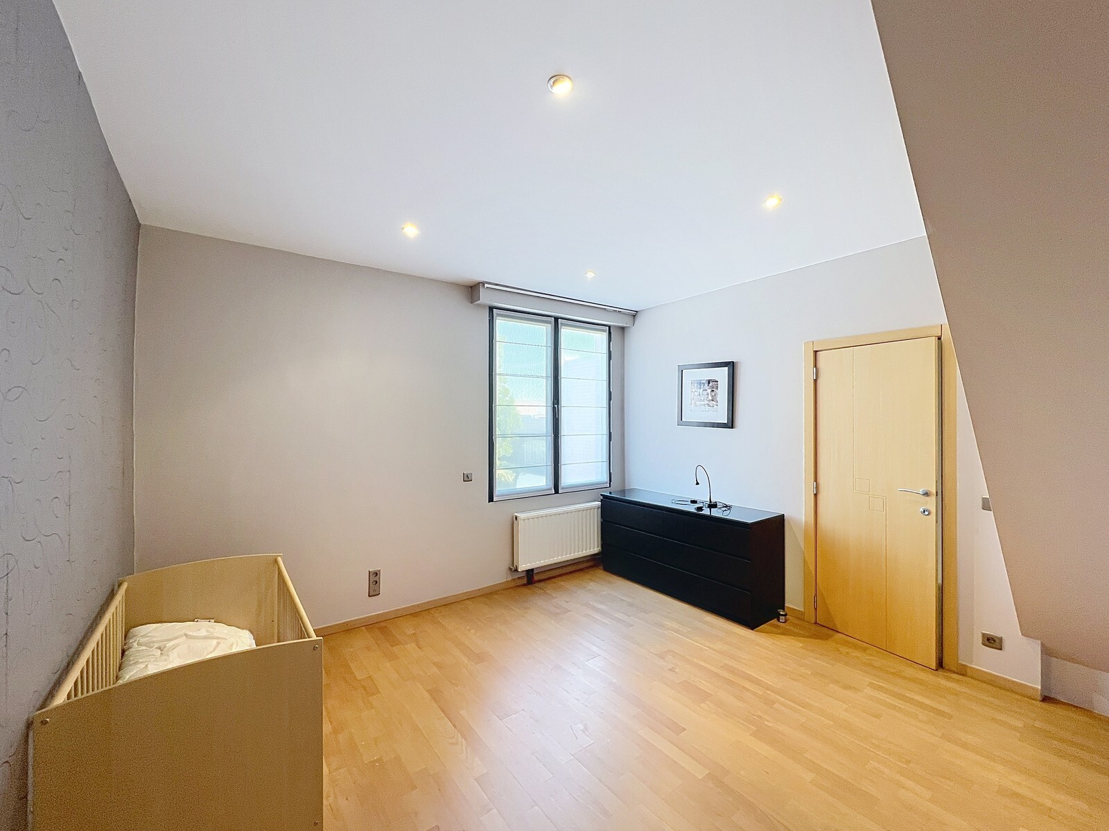Eerste verdieping: Nachthal - toilet - opbergkamer met kastenwand - badkamer (met bubbelbad, inloopdouche- wastafel met enkele lavabo en spiegelkast) – 2 slaapkamers - dressing.
