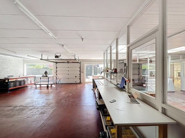 Magazijn 3: 160 m² (29,60 x 5,40) + garage 40 m² (5 x 8m) met sectionale poort (b: 3m - h: 2,50m), VH 2,70m.