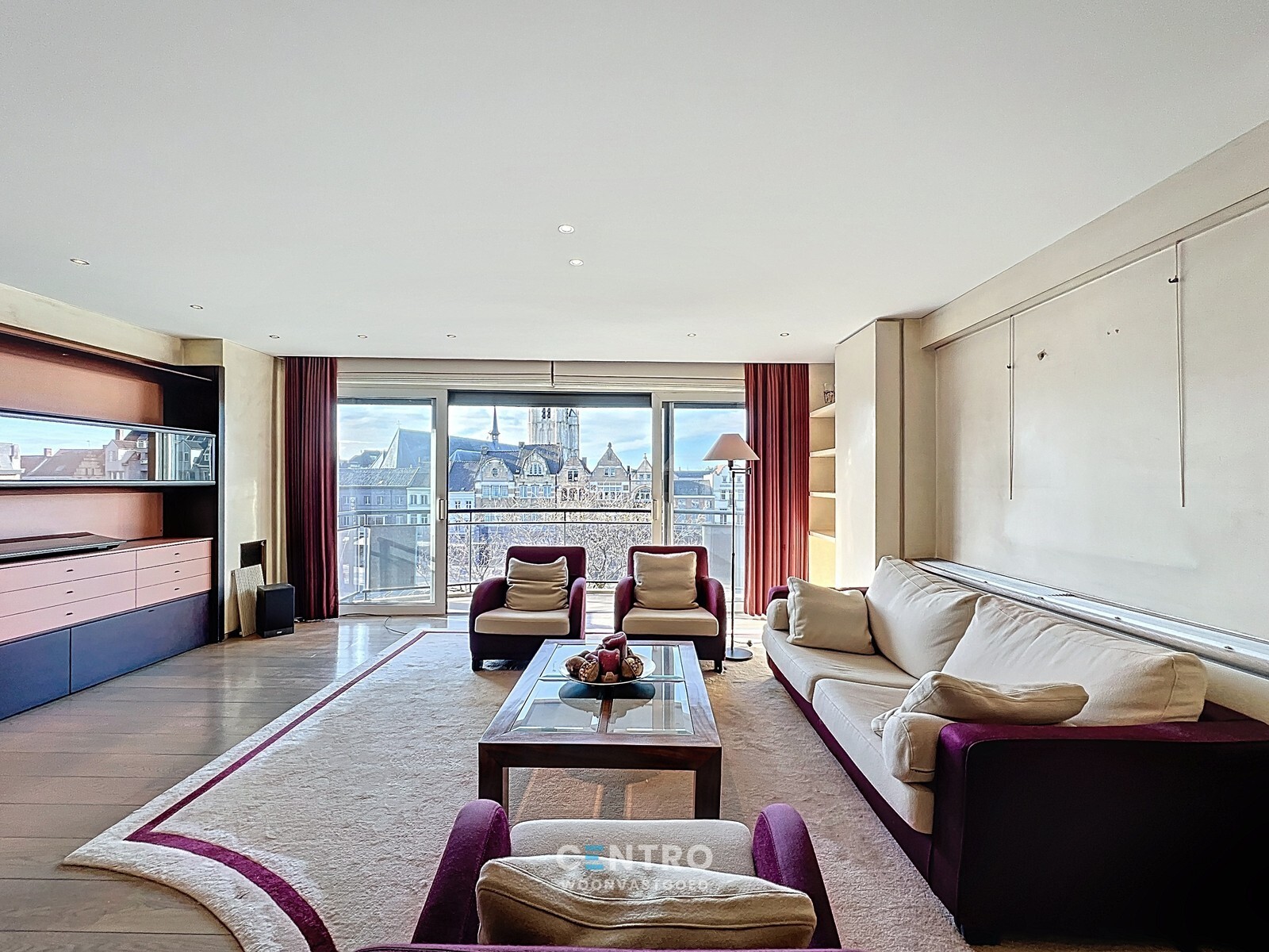 Appartement op AAA-locatie: ruim (127m²), ZONNIG doorloopappartement op de Grote markt (o.a. 2 slpk, dressing, 2 badk, 2 terrassen).