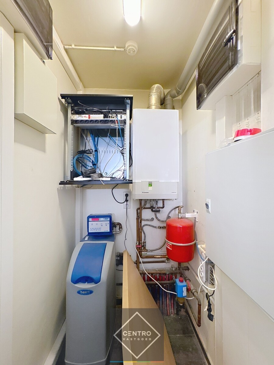 Inkomhal met wachtruimte - kabinet 1 - kabinet 2 - bureel/secretariaat - ingerichte keuken - sterilisatieruimte - technische ruimte (met waterverzachter) - berging - badkamer (o.a. met toilet en douche) - afzonderlijk gastentoilet (met lavabo) - fietsenstalling - garagebox.