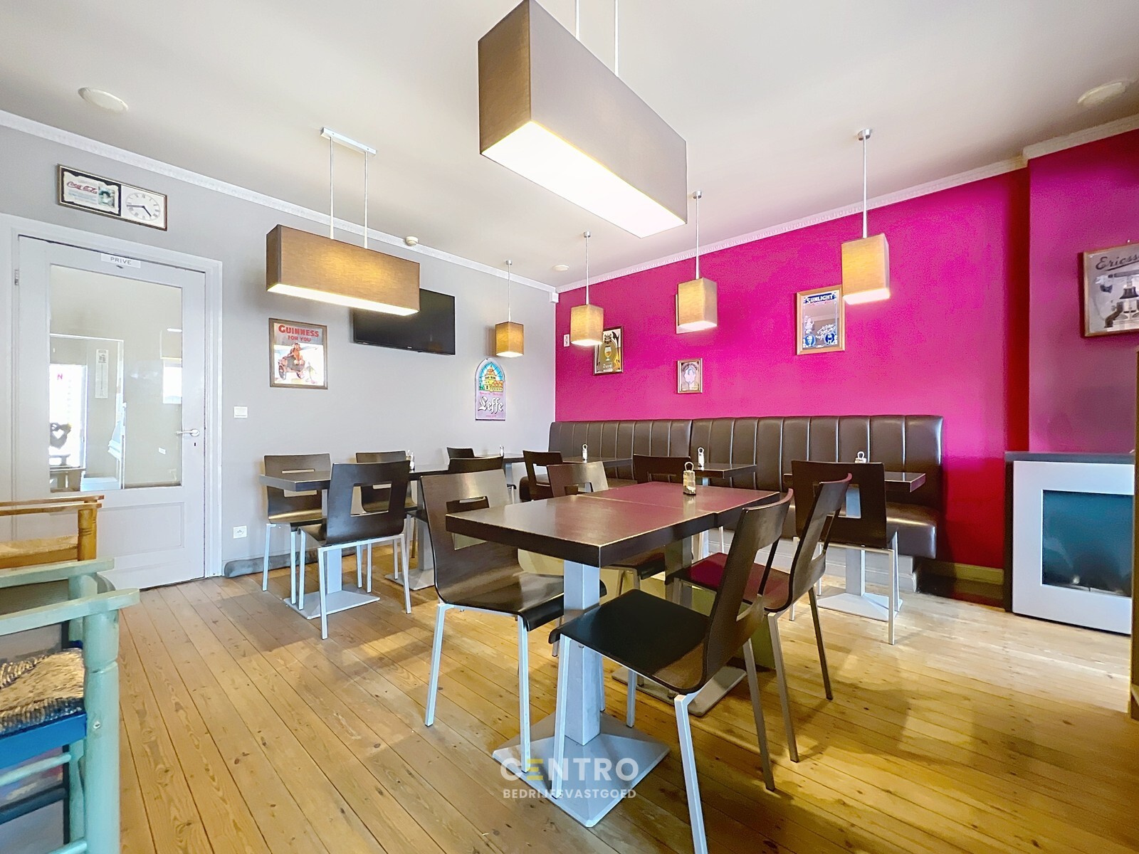 Gelijkvloers (± 60 m²):Nog volledig ingericht voor frituuruitbating (meubelen, friteuse, koeltoog, frigo’s,…) - sanitair (dames/heren) - parkeergelegenheid voor de deur – terras overdekt met automatische zonnewering – gashaard - 18tal zitplaatsen binnen.
