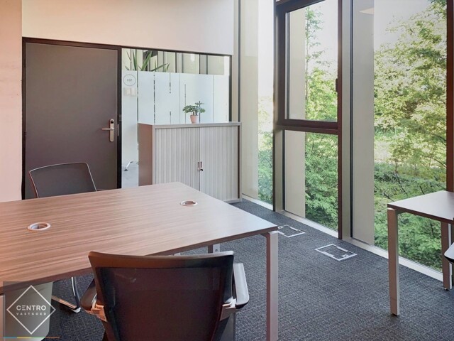 Met randaccomodatie: bemande receptie/onthaal, verschillende vergaderzalen, bijkomende open werkplaatsen, sanitaire voorzieningen, keuken met vaatwas en koffiemachine, terras met uizicht op een groene ruimte ...