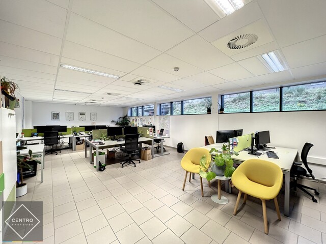 Kantoor: keramische vloeren - vast tapijt - tegelplafonds met airco en ventilatie - centrale verwarming - rookmelders - datavoorzieningen.