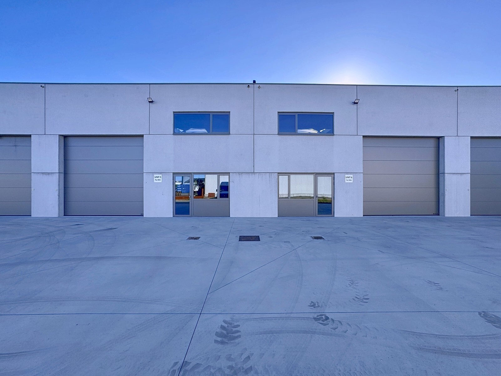 - Scheidingswanden in gladde betonpanelen met dikte van 15cm, dienst doende als brandmuur