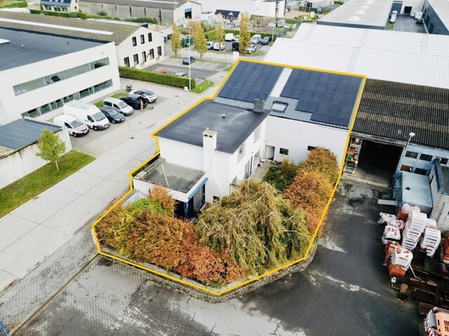 BEDRIJFSGEBOUW te koop in Zedelgem, bestaande uit MAGAZIJN (265m²) en WONING (3/4 slpkms, garage en tuin). Inclusief ZONNEPANELEN en BATTERIJ!