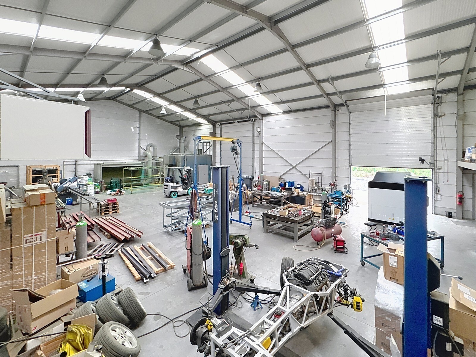 - Dak: Recent vernieuwd en geïsoleerd dak met sandwichpanelen en lichtstraten