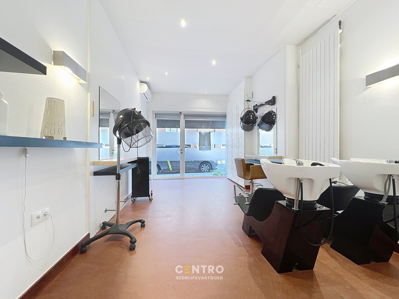Gelijkvloers (20 m²): Handelsruimte (voorheen kapsalon) met airco - berging met uitgietbak en afvoer voor toilet. Mogelijkheid tot kantoor, winkel, praktijk, etc.