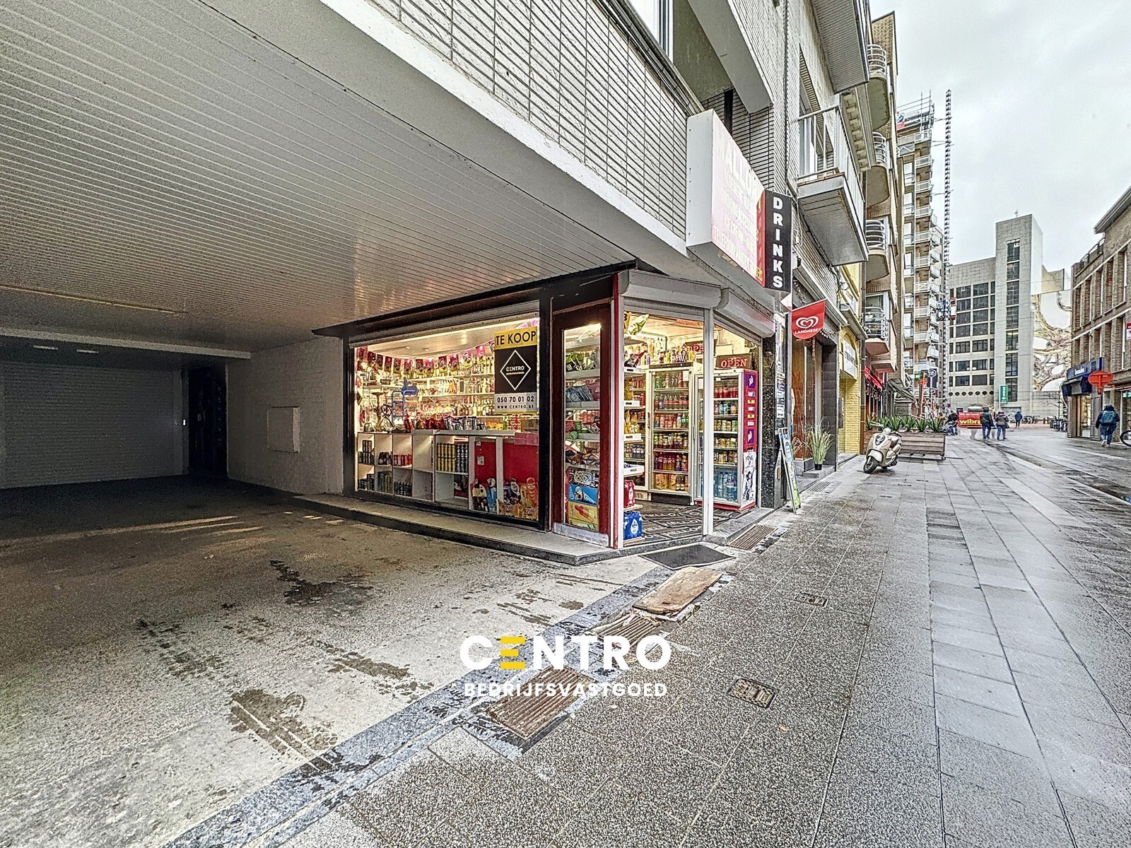 Gelijkvloers: op heden uitbating als krantenwinkel – airco warmen/koelen.