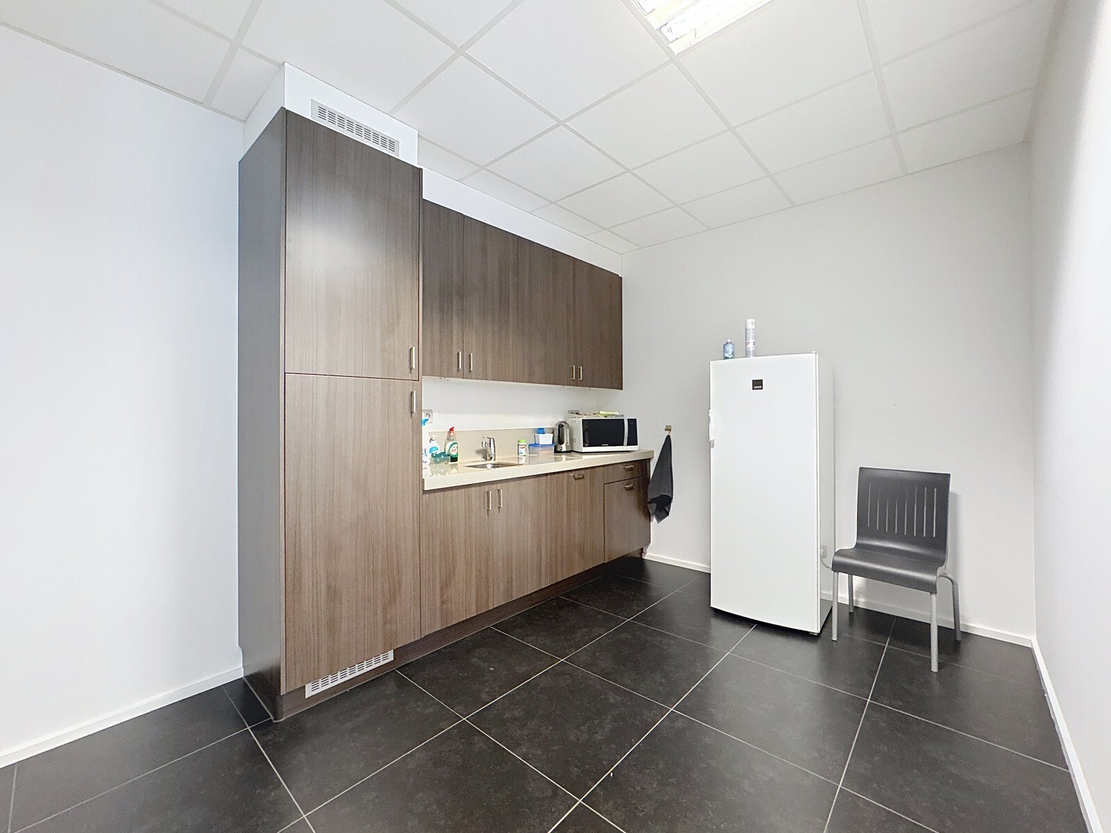 Eerste verdieping: één grote, mooie, open ruimte met veel natuurlijk daglicht (hoekligging met veel ramen) - sanitaire ruimte (2 toiletten met lavabo) - geïnstalleerde keuken, voorzien van ingebouwde vaatwasser en koelkast.