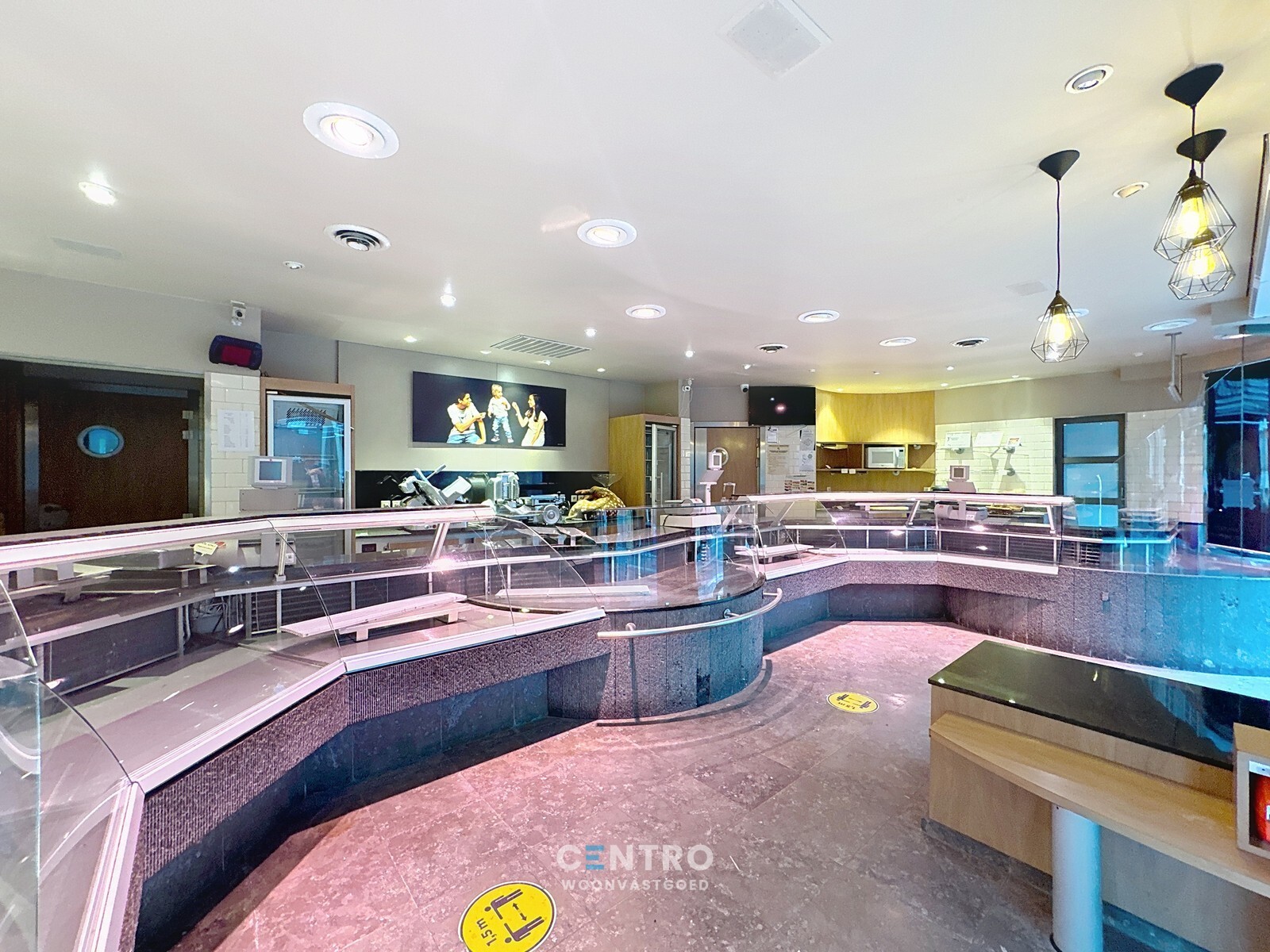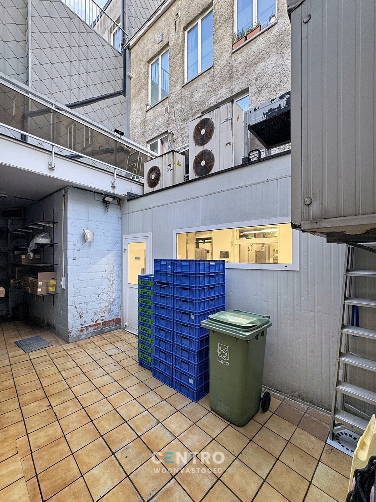 Handelsgelijkvloers ingericht als slagerij met winkelruimte met koeltoog - atelier - kookruimte - wasplaats - ruime koelcel - grote kelder - koer/terras.