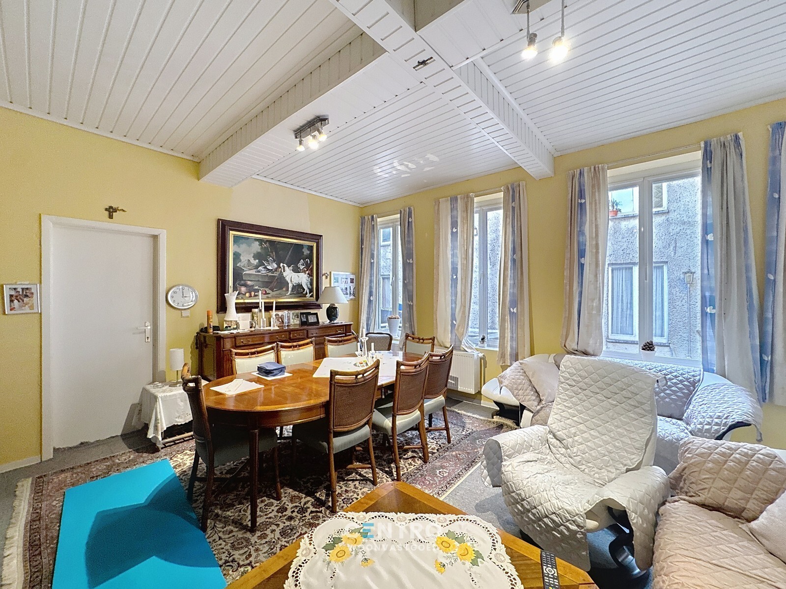 - Afzonderlijke inkomhal zijkant links vooraan naar de 3 verhuurde appartementen.