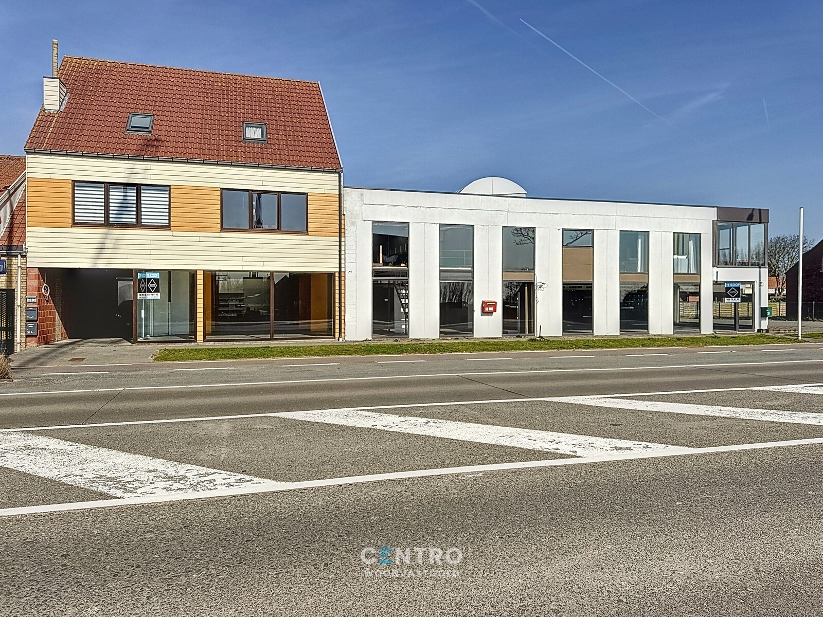 Handelsruimte met magazijn - burelen - kitchenette - afzonderlijk gastentoilet - veranda (Indien nodig kan deze nog gespuprimeerd worden ifv extra parkeerplaatsen) - berging..